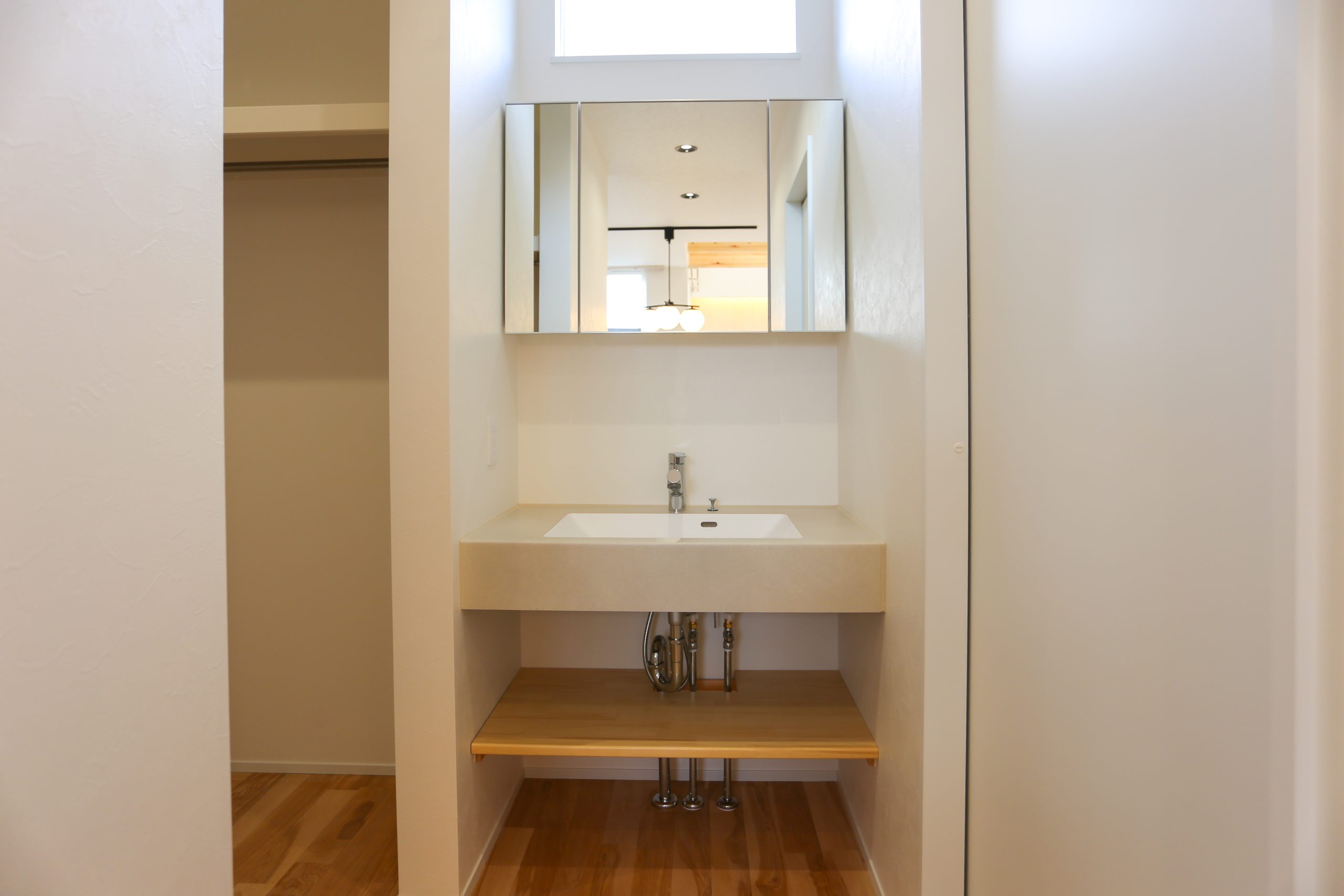 アイランドキッチンを中心に、水まわりをスムーズにつなぐ動線を設計。