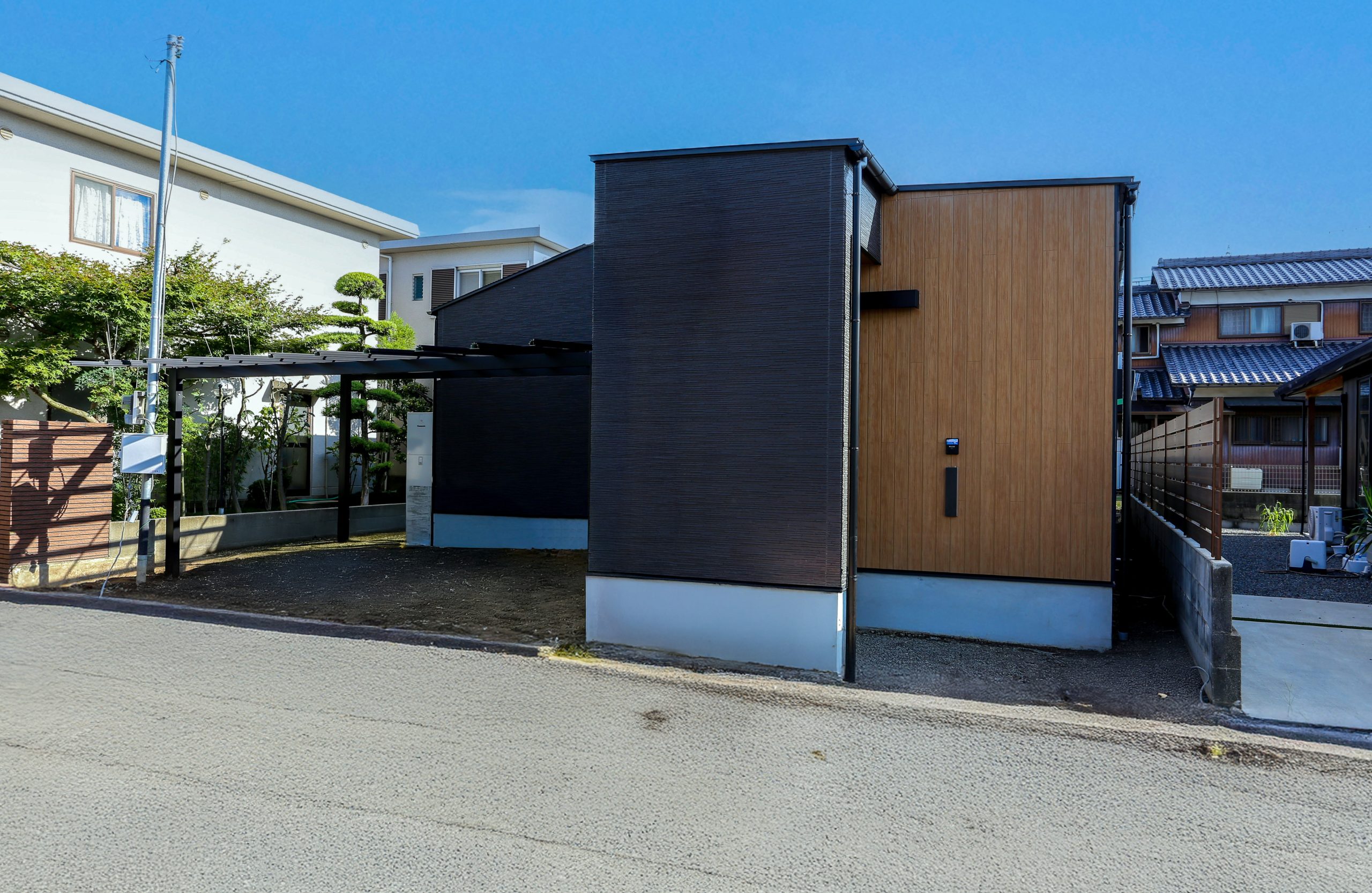 黒・白・木を基調にした落ち着きある外観デザイン。