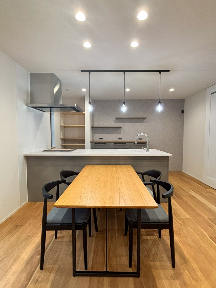 空間効率を追求しながらも、木材やモルタルなどを部分的に取り入れ、