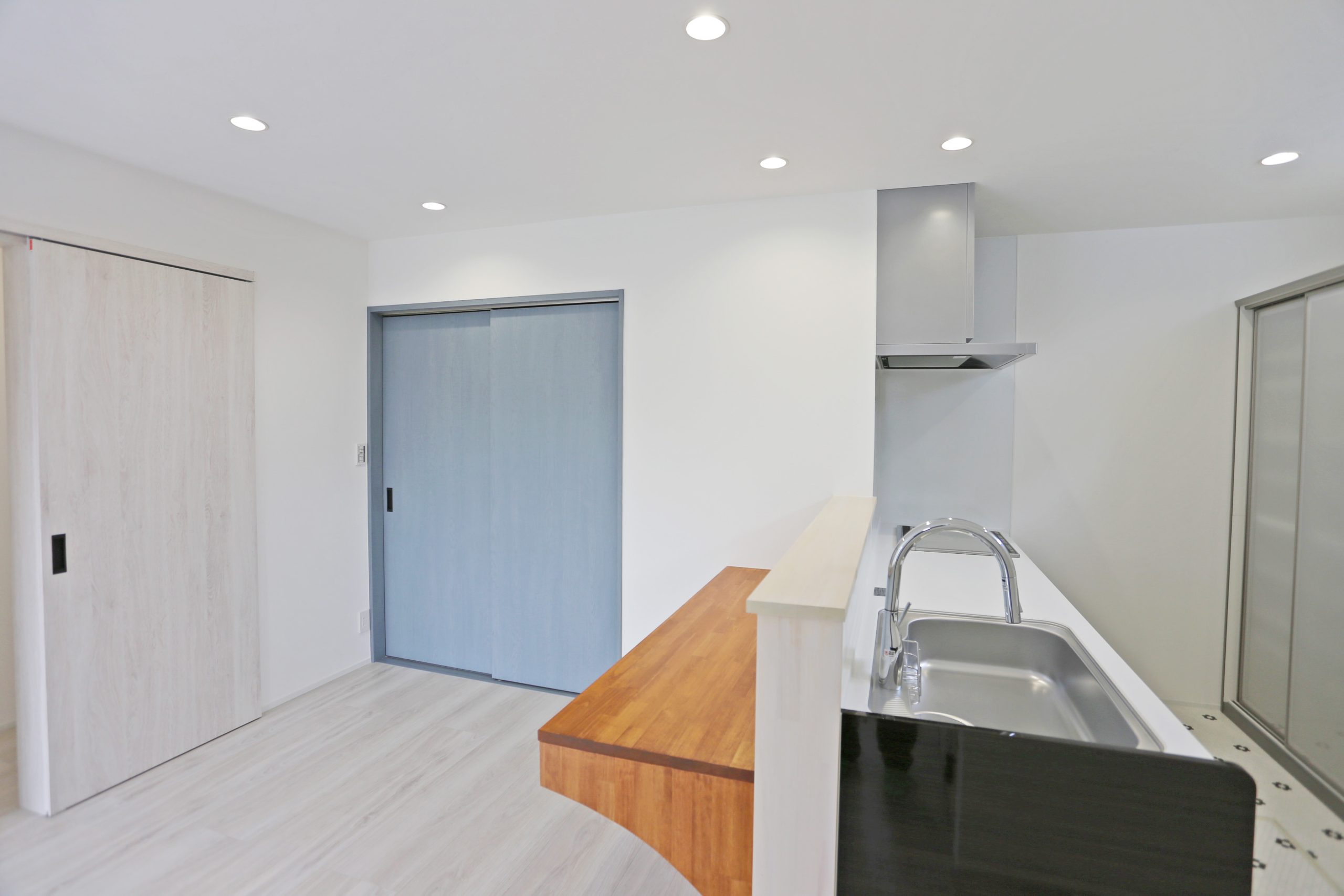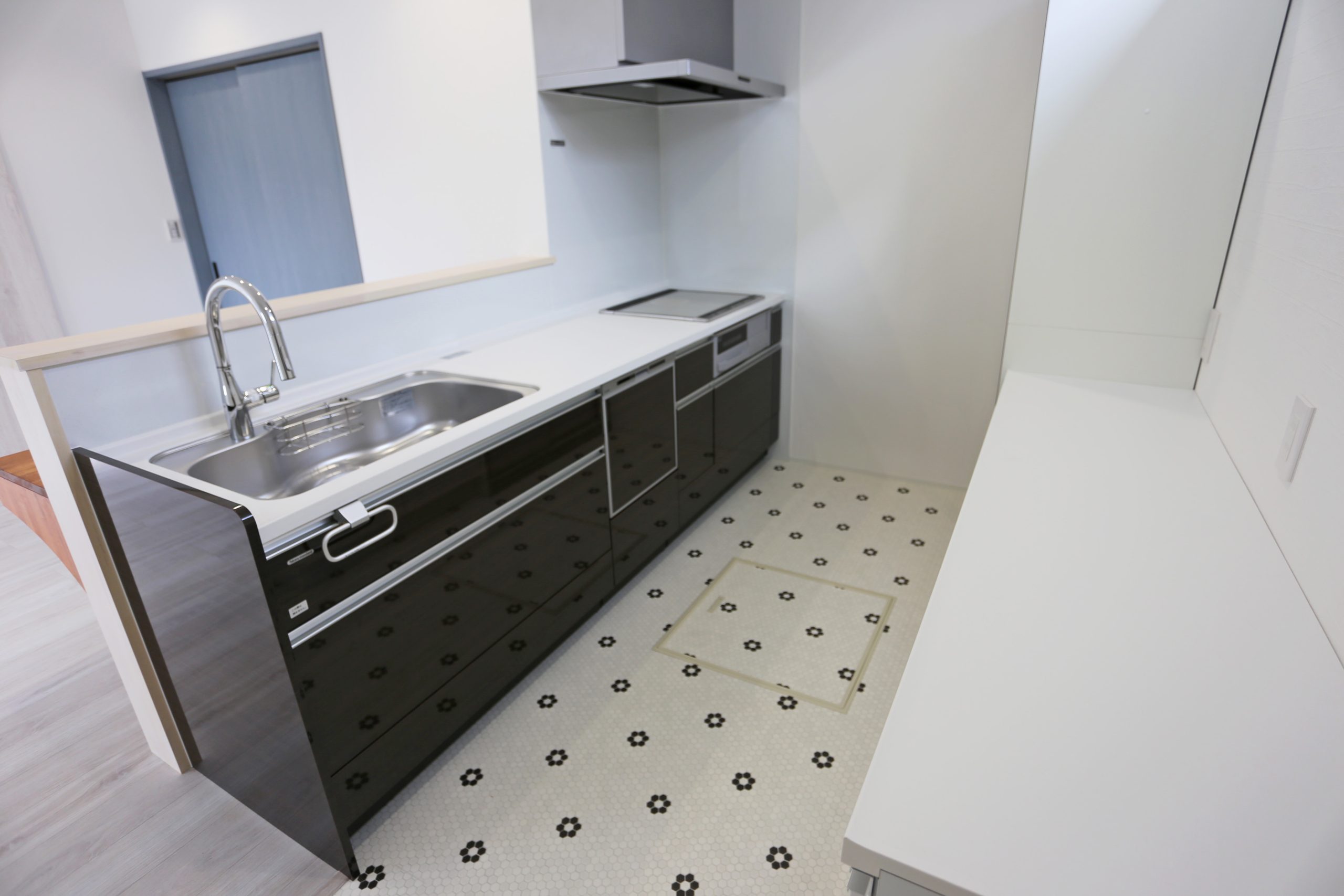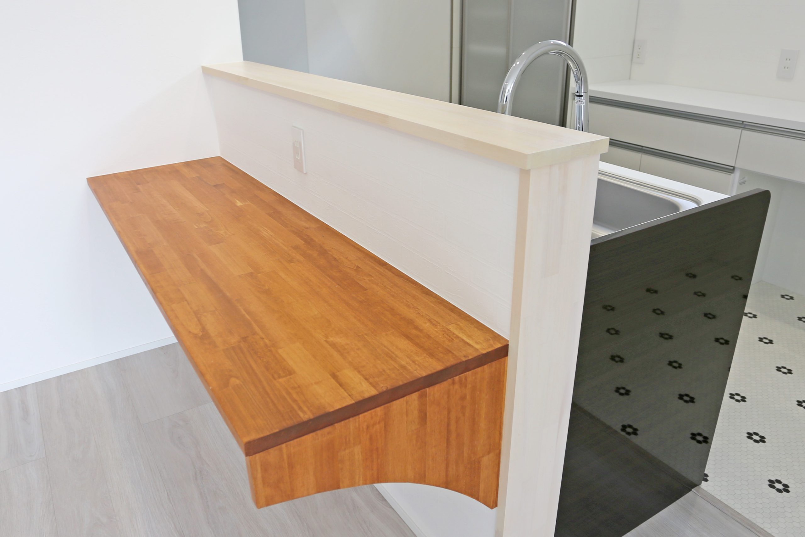 キッチン前にはカウンターテーブルを設置。