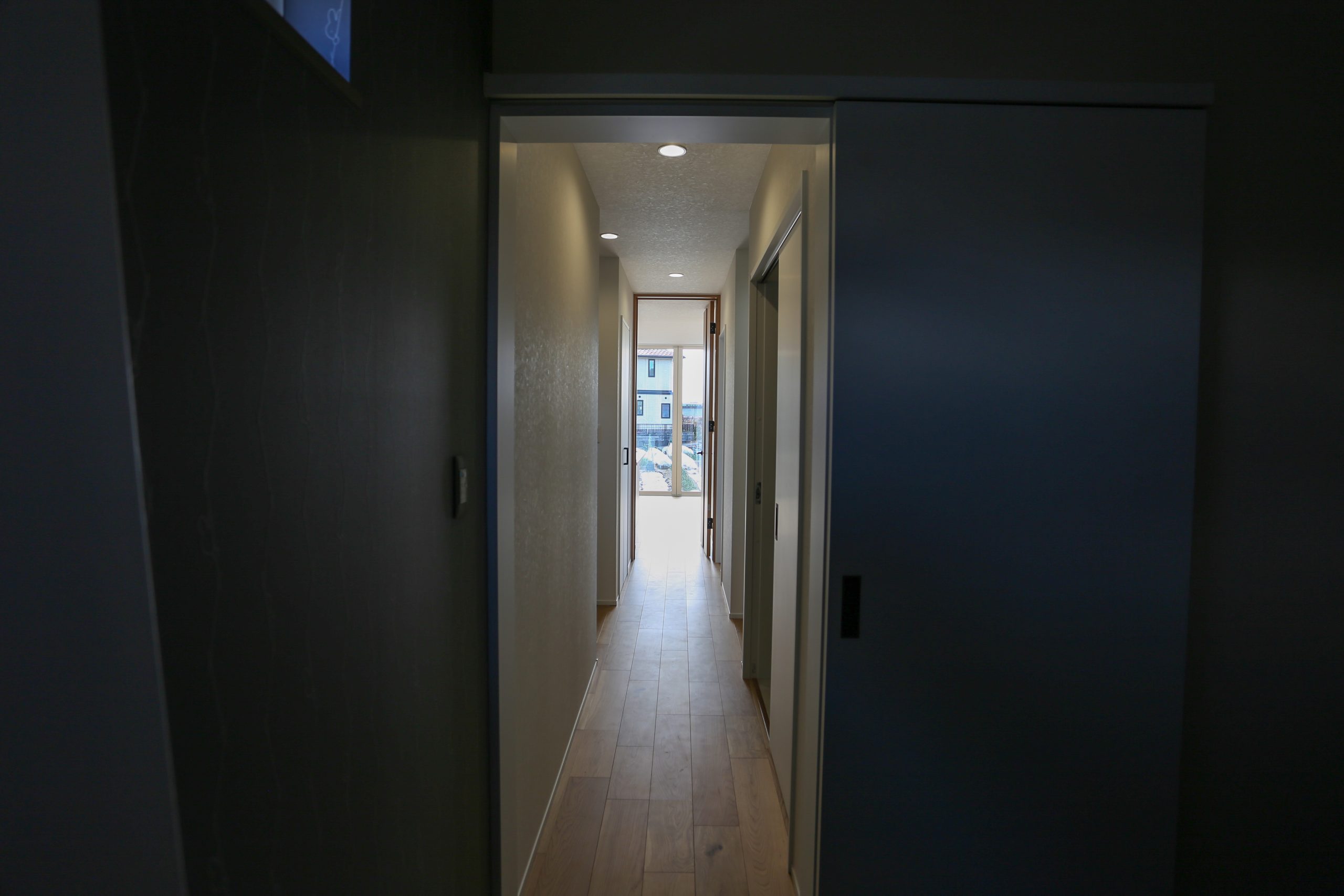 廊下を最小限に抑え、限られた面積の中でも伸びやかに感じられる空間構成としました。