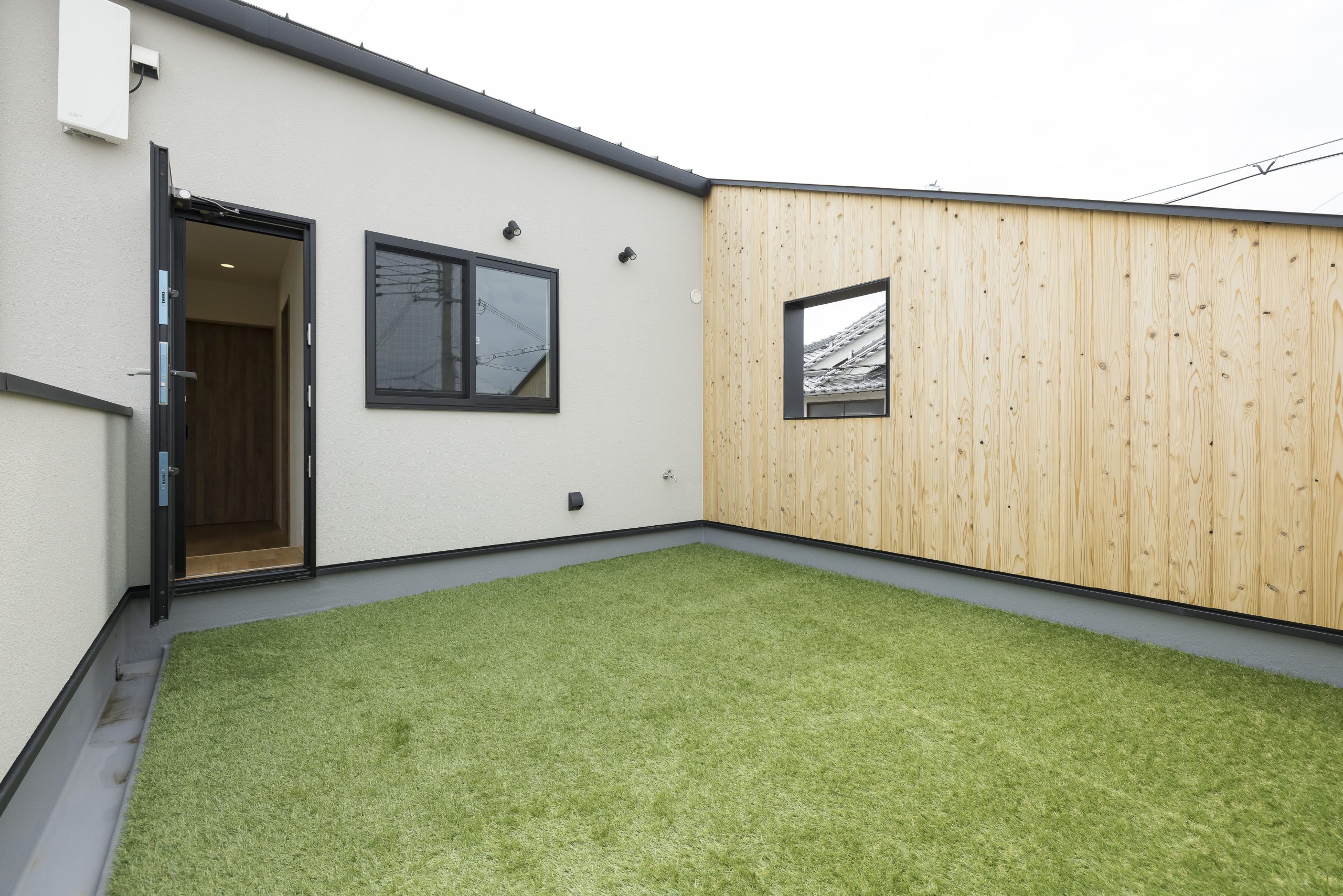 さらにフェンスの高さや板のピッチを細かく調整し、採光・通風・プライバシーをバランスよく整えました。外からは落ち着いた佇まい、内側からは光と緑が広がる心地よい住まいです。