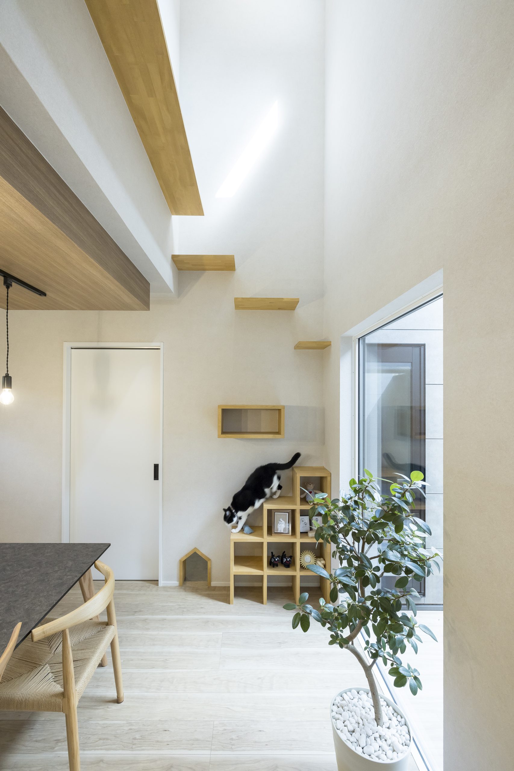 さらにネコちゃんとの暮らしを大切に、キャットステップや囲われた中庭、専用スペースなど安心してのびのび過ごせる工夫も取り入れました。