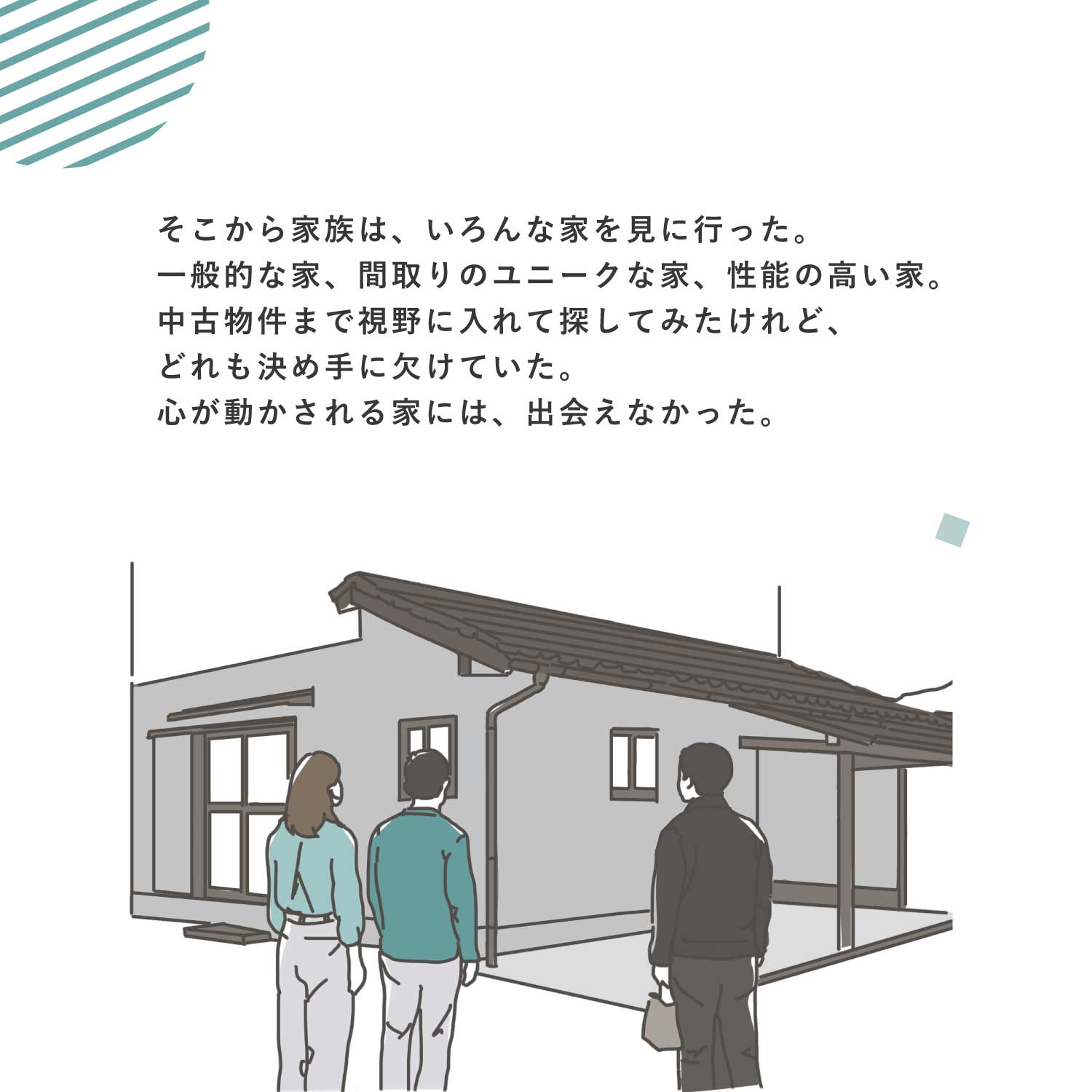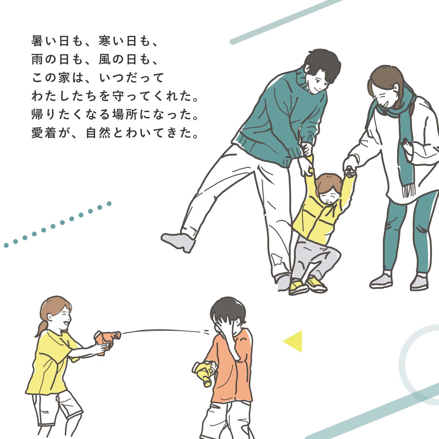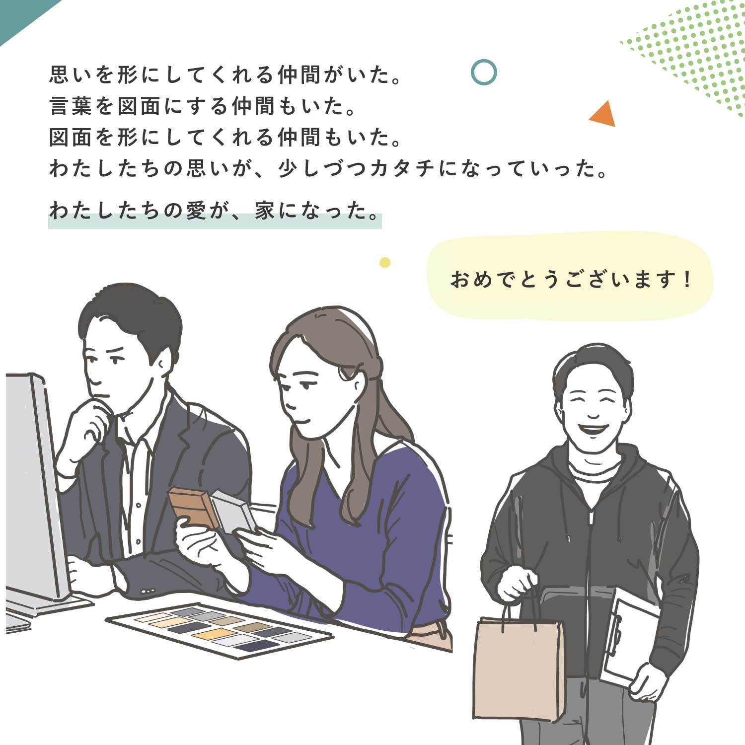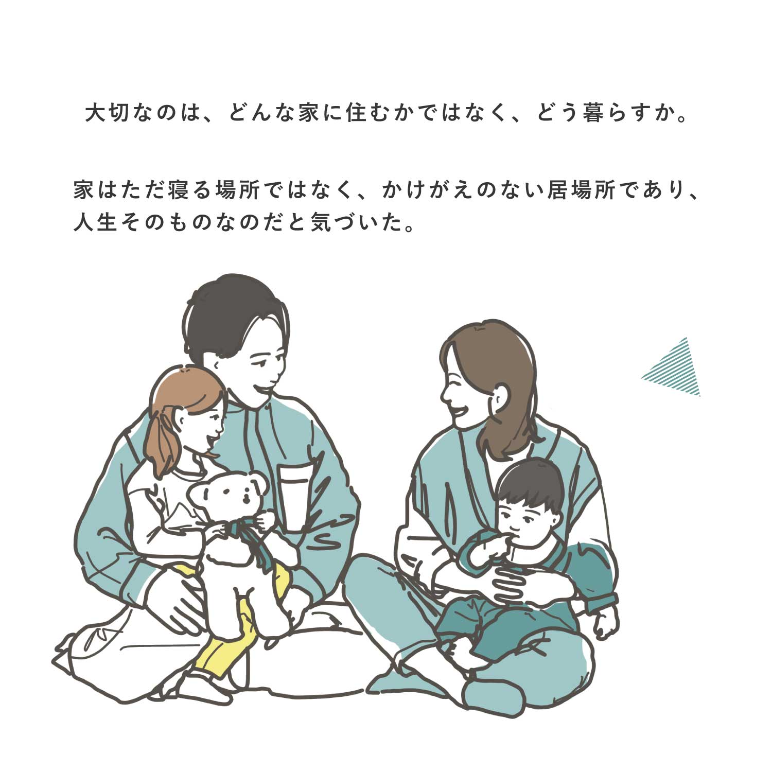 日々の暮らしの中で、家づくりの大切さに気づく物語です。