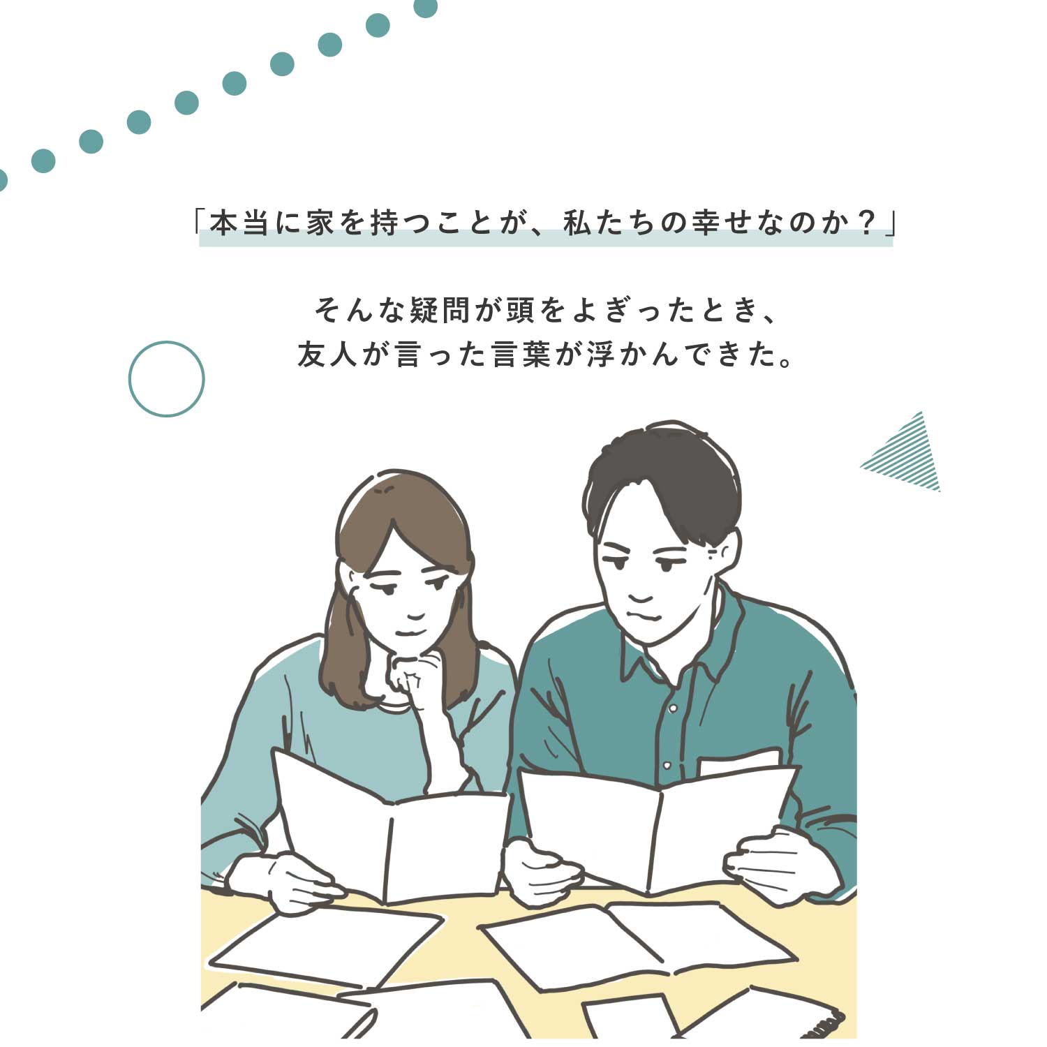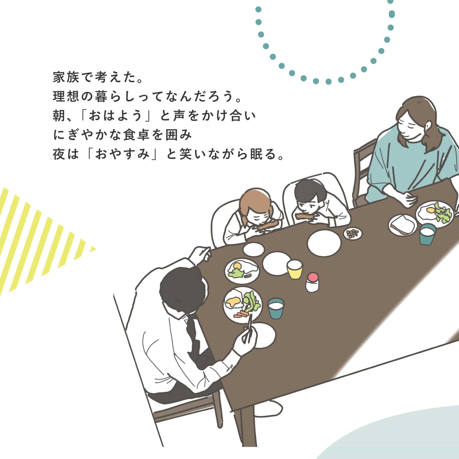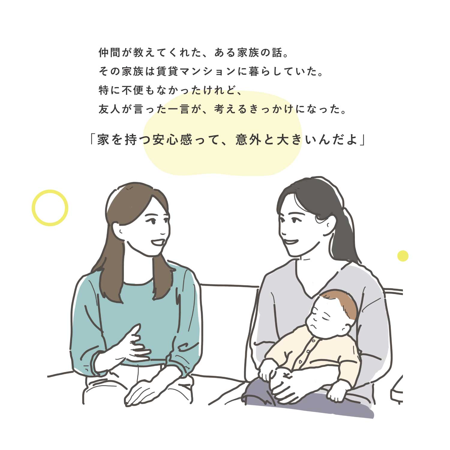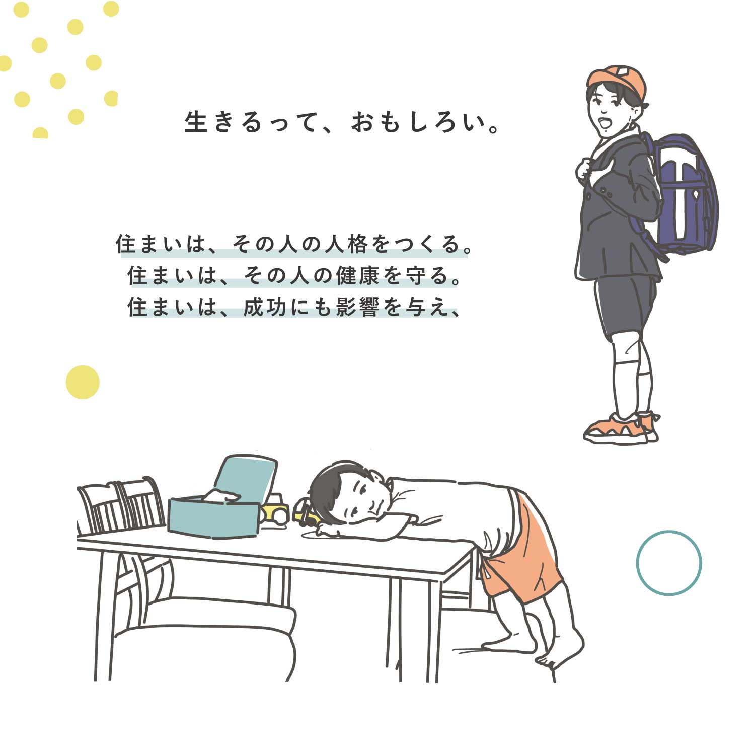 日々の暮らしの中で、家づくりの大切さに気づく物語です。