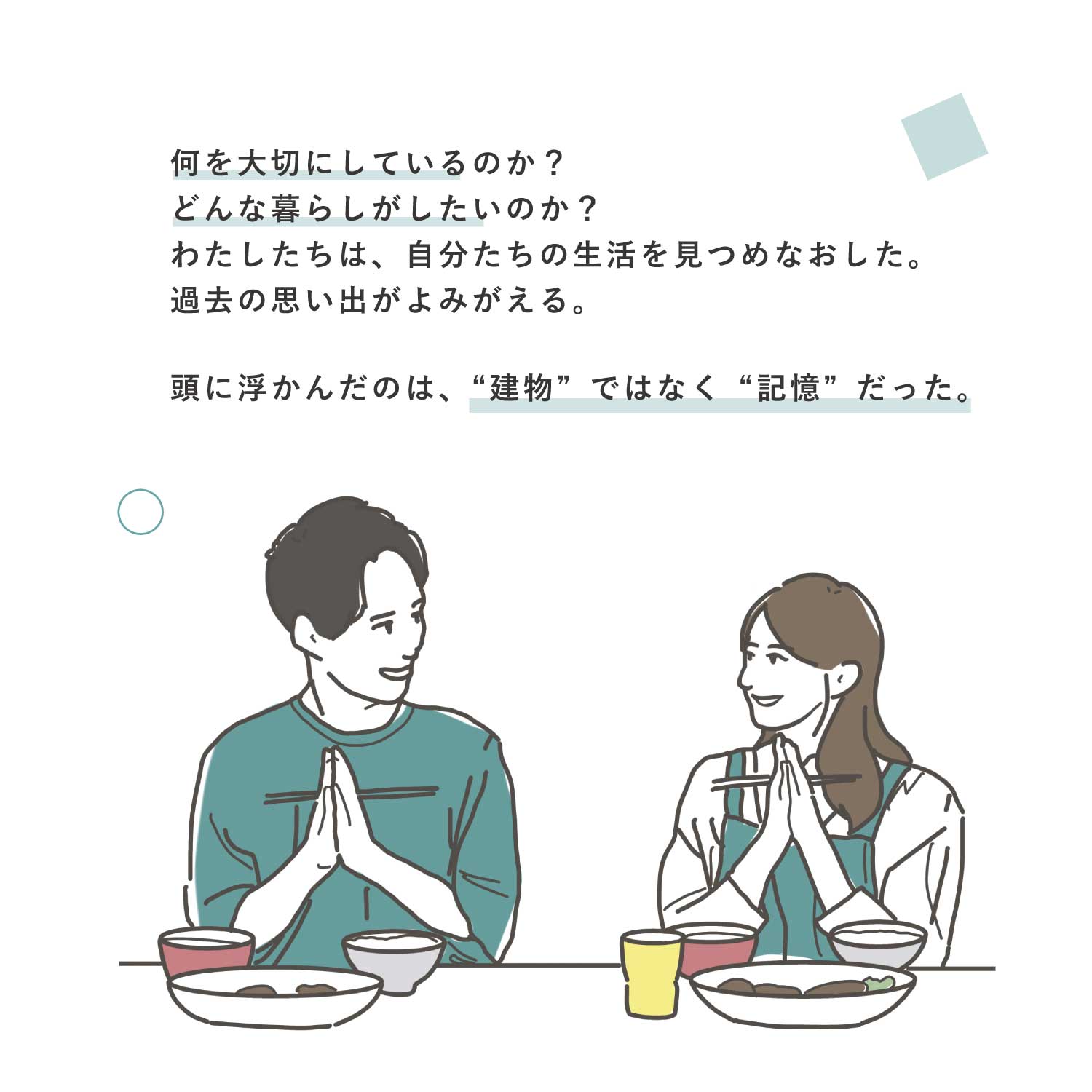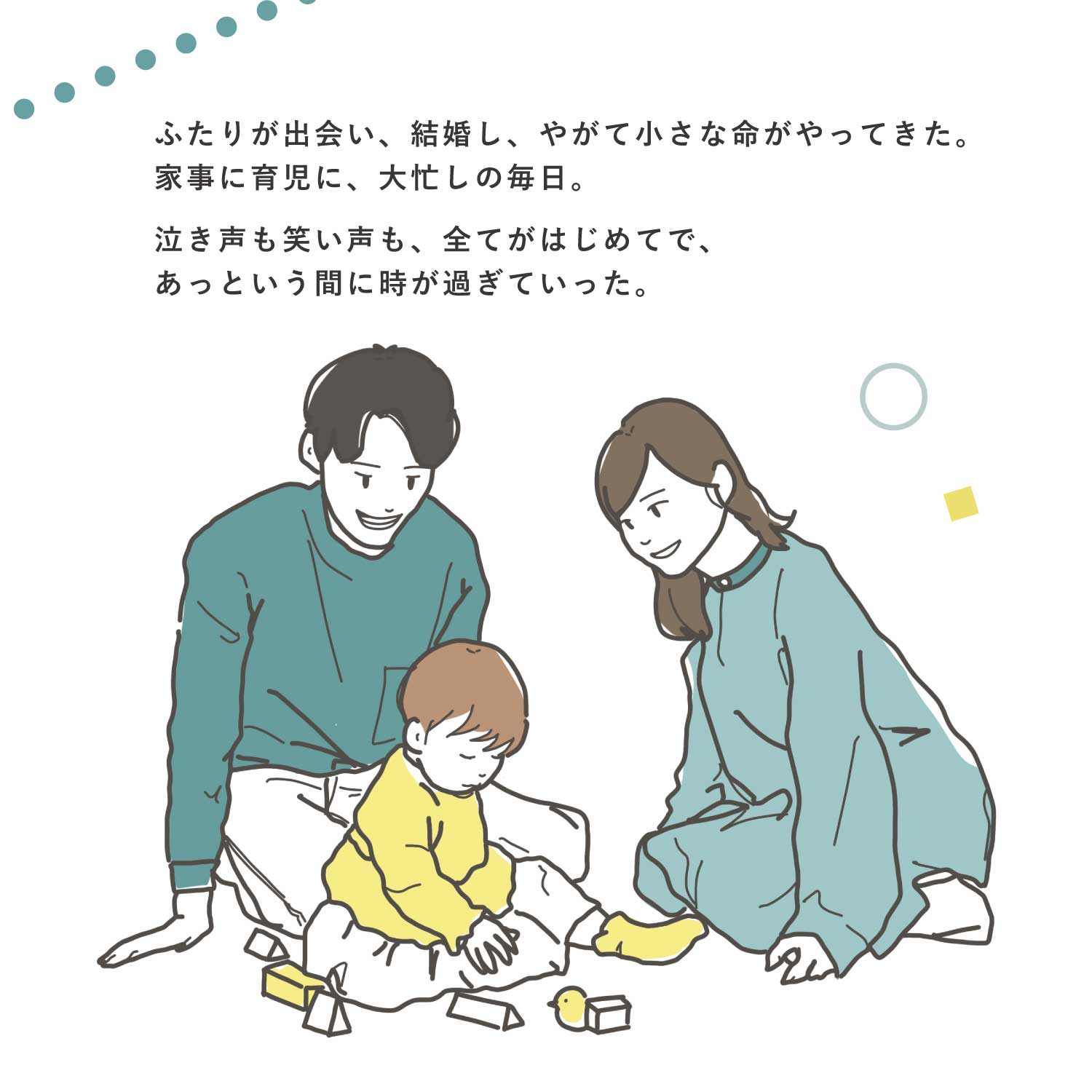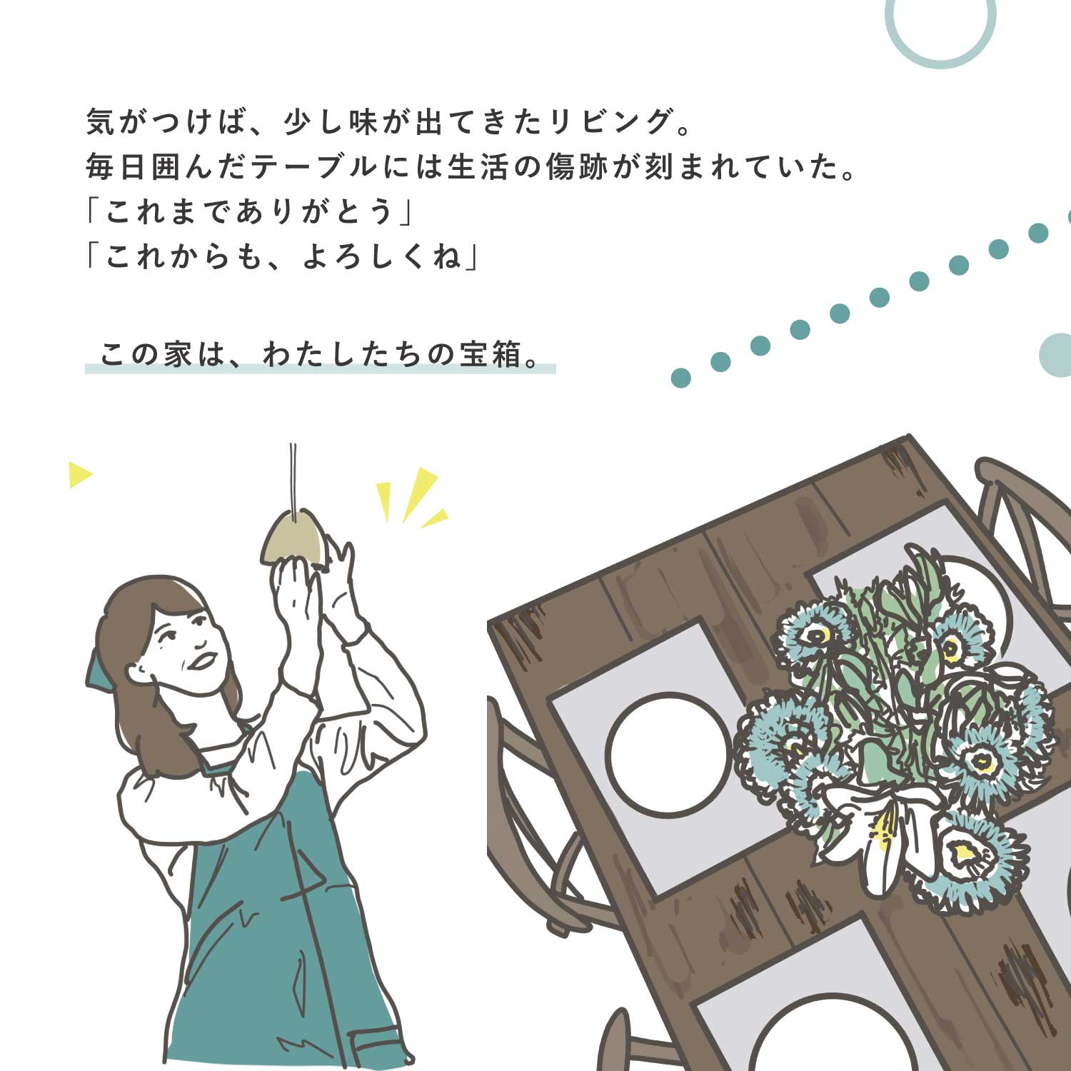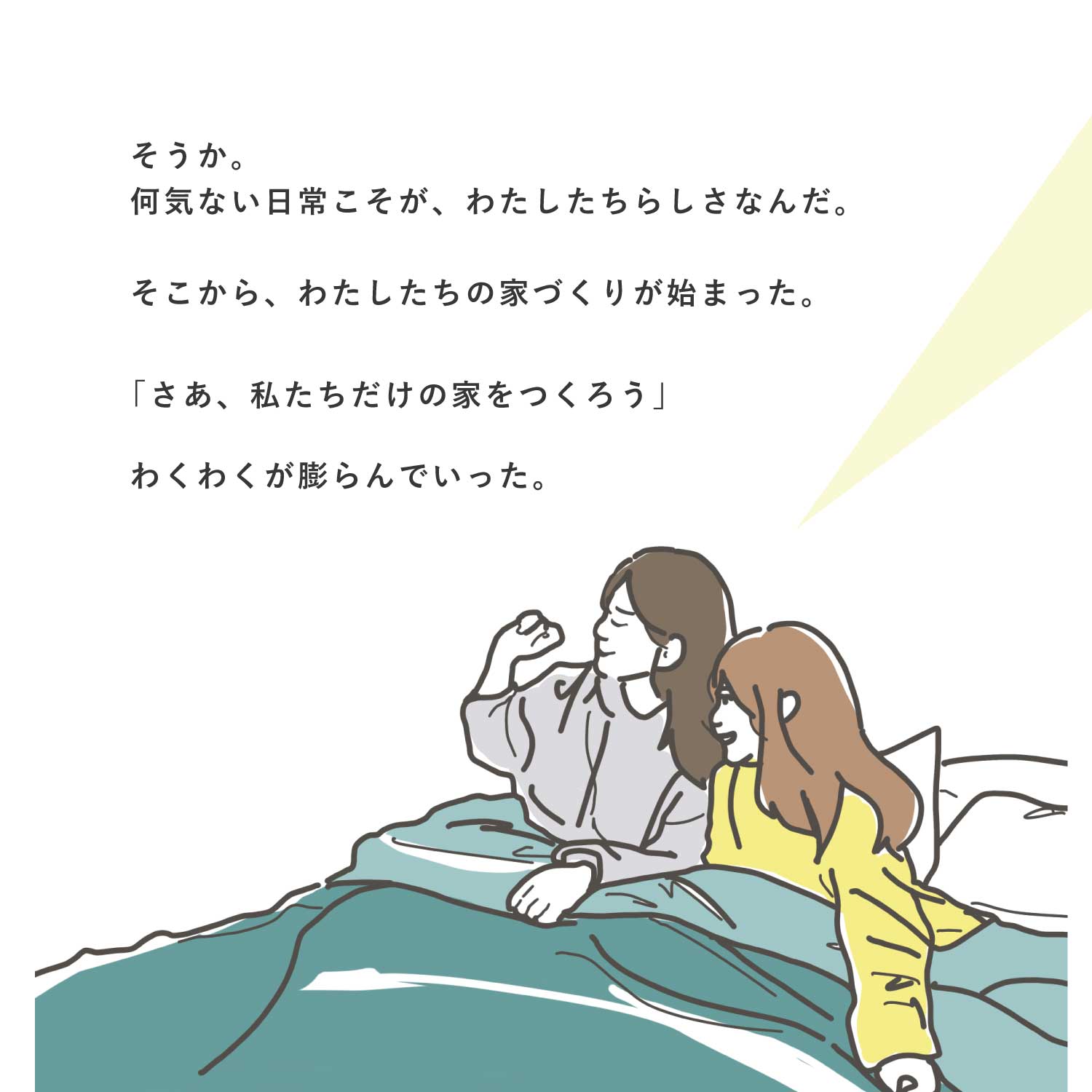 日々の暮らしの中で、家づくりの大切さに気づく物語です。