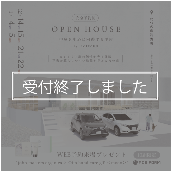 【受付終了】 “中庭を中心に回遊する平屋”〈1/4(土) – 5(日)〉