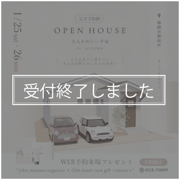 【受付終了】 “大人かわいい平屋”〈1/25(土) – 26(日)〉